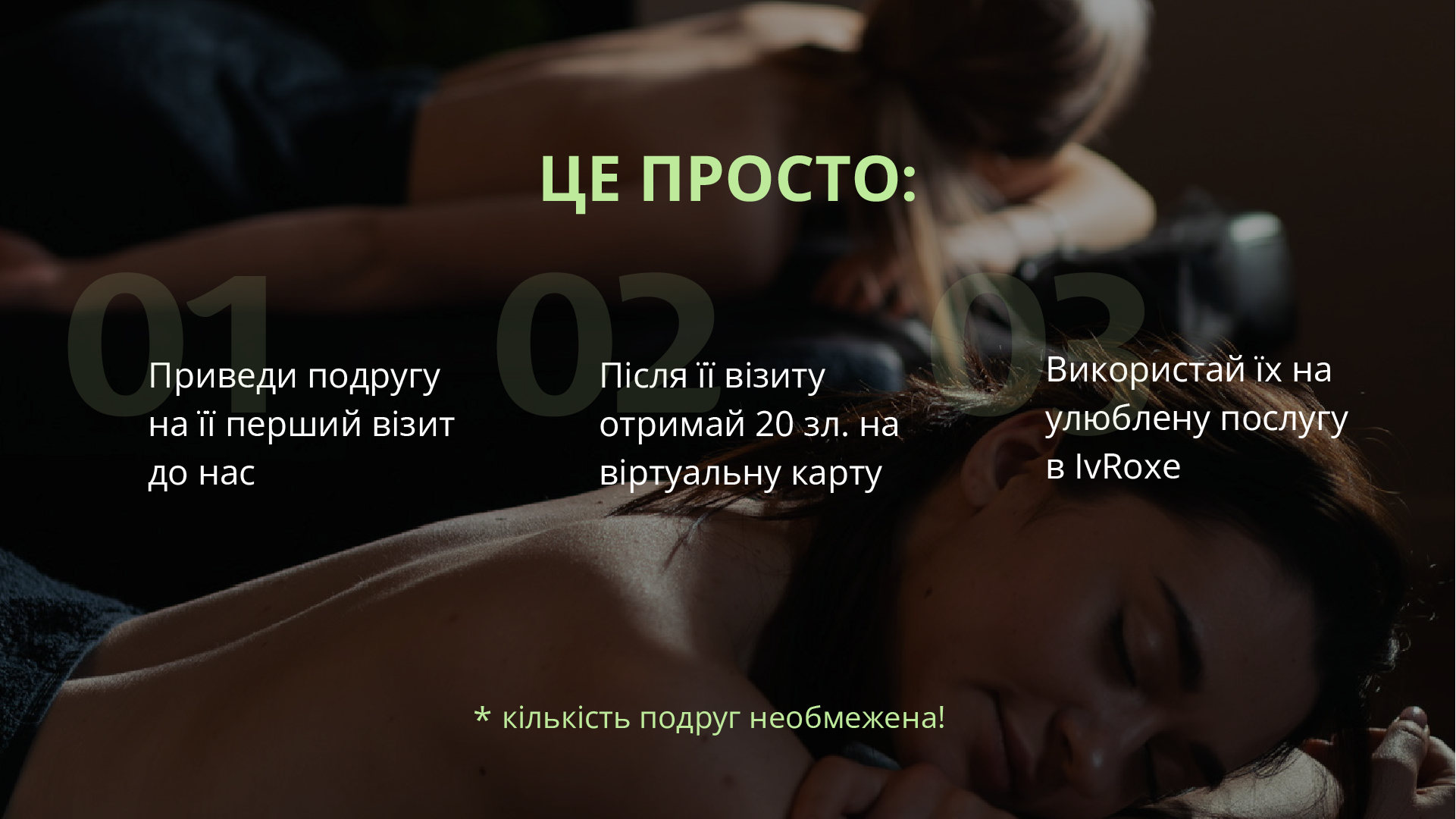 Отримуй бонуси за рекомендацію IvRoxe своїм друзям та розділяй із ними унікальний досвід масажів у нашому салоні!